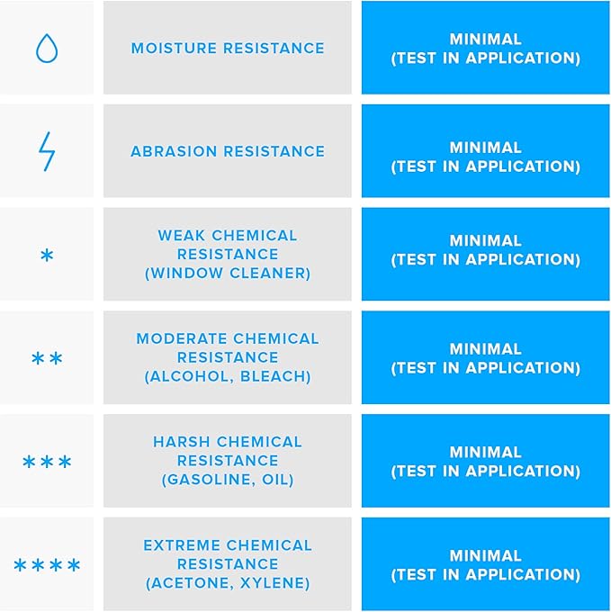 - Premium coated polypropylene label: Good smear/scratch resistance, excellent chemical resistance; can withstand temperatures from -65°F (-54°C) to 200°F (93°C)