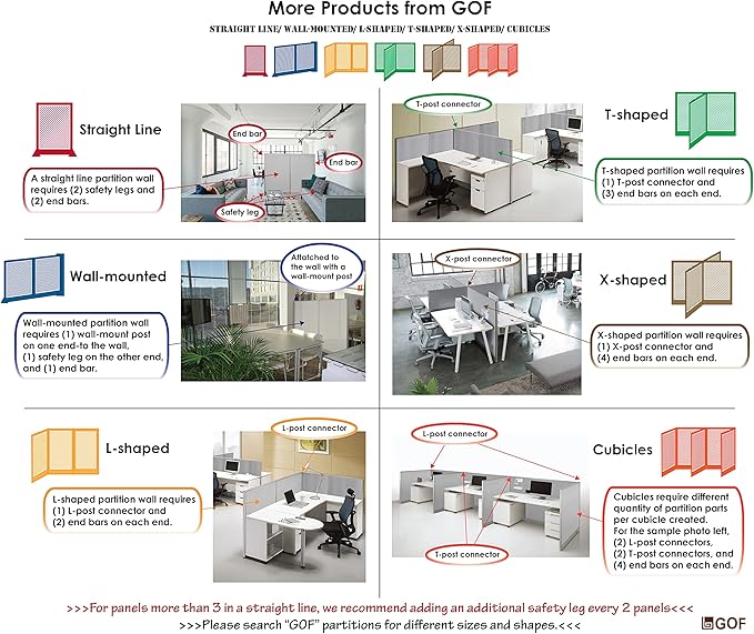 GOF Freestanding Office Partition, Large Fabric Room Divider Panel, 72" W x 72" H