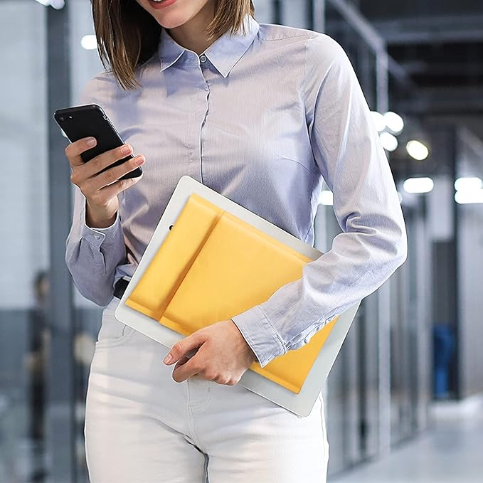 - 【Simple Peel & Seal 】Simply peel and fold over to seal each package safely and securely.Bubble envelopes are equipped with a strong self-sealing adhesive strip that cannot be easily torn apart and tamper-resistant.Moreover,the smooth surface of the yellow Kraft bubble mailers can be written, labelled and stamped.