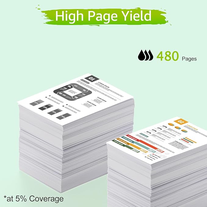 - High-Capacity Printing: Black cartridge yields ~480 pages (5% coverage, A4/Letter). Achieve 40%+ savings compared to original HP cartridges