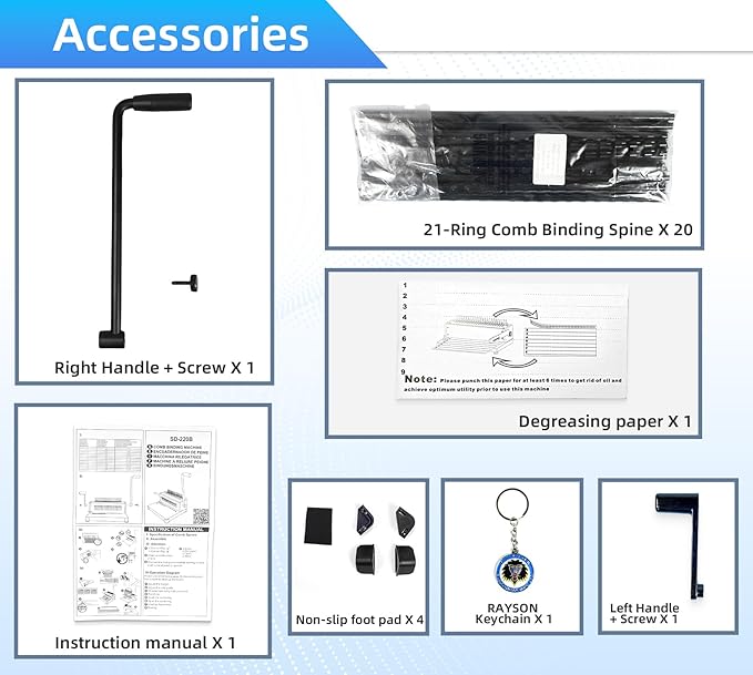 Rayson SD-220B Binding Machine, 21 Holes Comb Binding Machine, Max. Punch 20 Sheets & Binding 400 Sheets