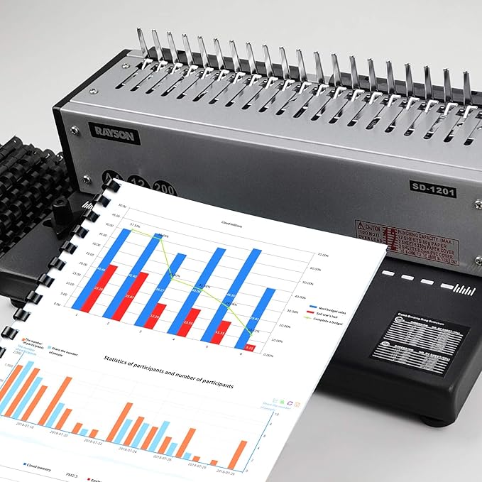 - 【Punch and Bind with Ease】Manually punches up to 12 sheets (A4, letter size, A5, B5, etc.) and binds up to 200 sheets with 22mm (7/8") comb rings, ideal for your document needs
