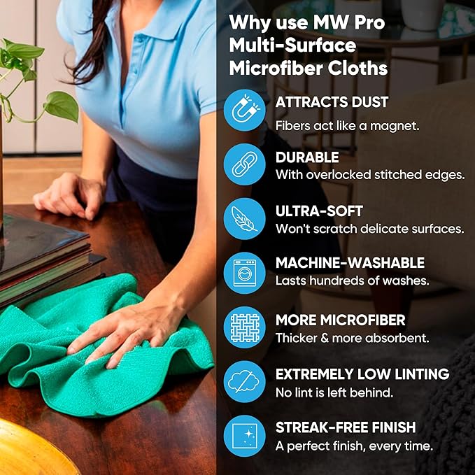 - Ready to tackle your big cleaning jobs with less effort? Try the new MW Pro Multi-Surface Microfiber Towel - now in a larger size perfect for kitchen cleanups and auto detailing! You’ve heard people say “work smarter, not harder”, right? They were talking about this cleaning cloth.