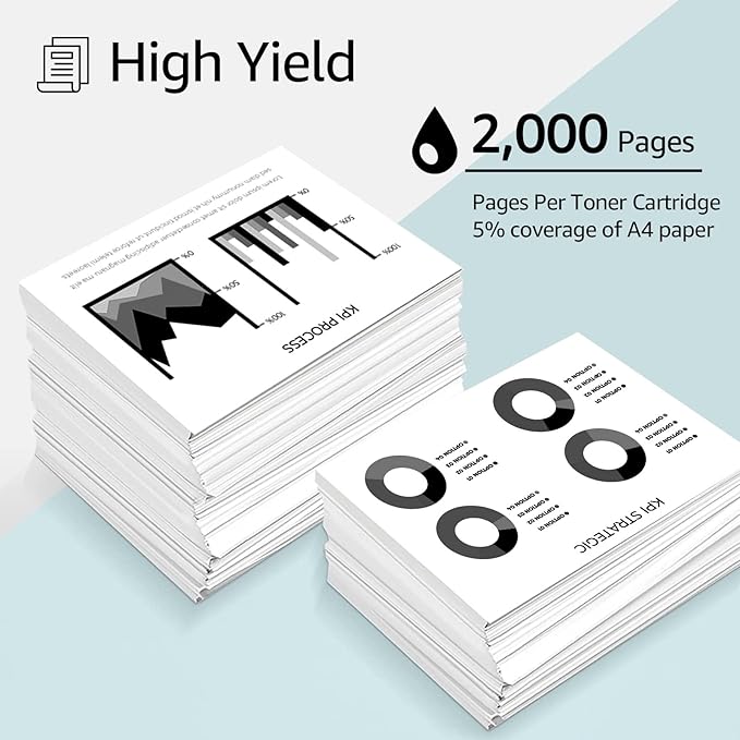 - Page Yield: Up to 2,000 pages per CRG104 black toner cartridge (based on 5% coverage of Letter size Paper). Actual toner yield varies with usage, graphics printed and environmental conditions.