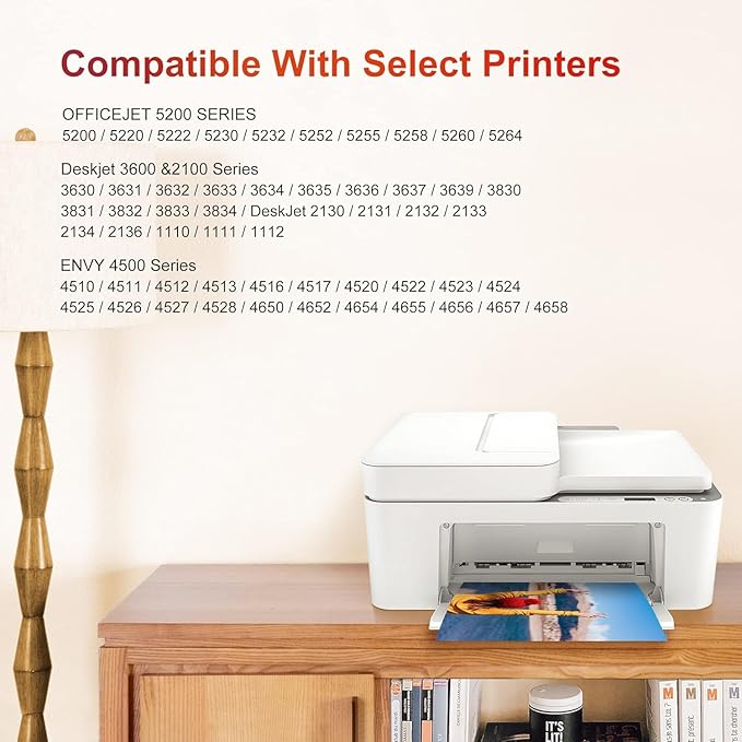 - Compatible Devices : For Deskjet 3600 Series: 3630, 3631, 3632, 3633, 3634, 3635, 3636, 3637, 3639, 3830, 3831, 3832, 3833, 3834, DeskJet 1110, 1111, 1112; OfficeJet 5200 Series: 5200, 5255, 5258, 4650, 4652, 4654, 4655, 4656, 4657, 4658; ENVY 4500 Series: 4510, 4511, 4512, 4513, 4516, 4517, 4520, 4522, 4523, 4524, 4525, 4526, 4527, 4528; Deskjet 2100 Series: 2130, 2131, 2132, 2133, 2134, 2136 For Deskjet 3600 Series: 3630, 3631, 3632, 3633, 3634, 3635, 3636, 3637, 3639, 3830, 3831, 3832, 3833, 3834, DeskJet 1110, 1111, 1112; OfficeJet 5200 Series: 5200, 5255, 5258, 4650, 4652,β¦ See more