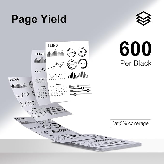 - TEINO ink cartridges display ink level real-time, deliver crisp, clear images and text. An ideal choice for home, office, school users looking for professional quality printing