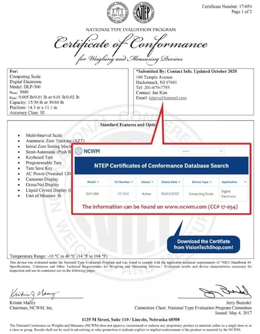 VisionTechShop DLP-300 Label Printing Scale Pole Display, 30/60lbs Capacity, 0.01/0.02lbs, NTEP Legal for Trade with a Free 1 case CAS LST-8040 UPC/Safe Handling Label, 58 x 60 mm