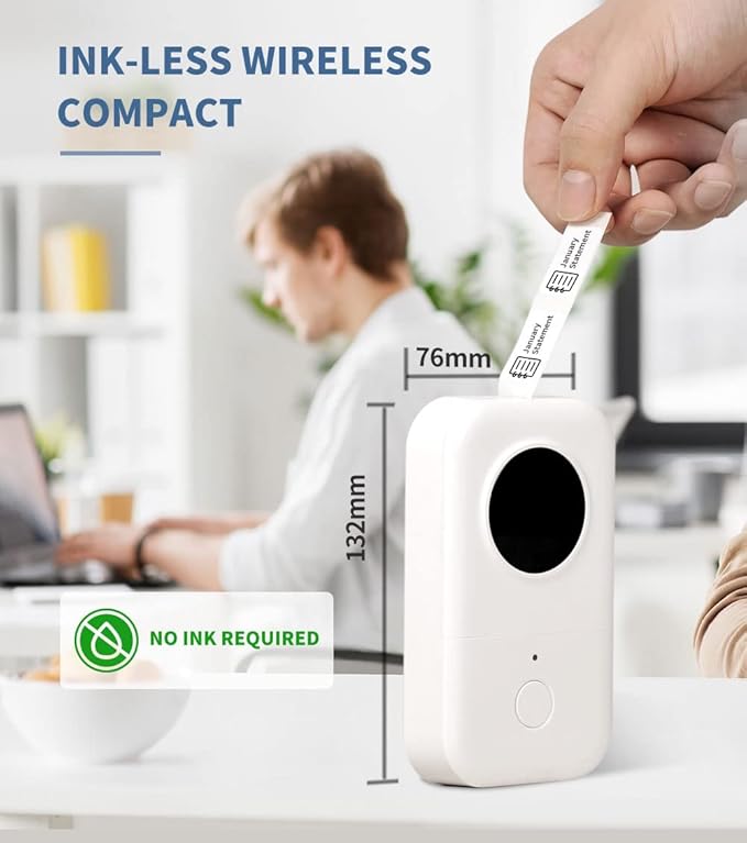 - Wireless & Portable - The mini-size, Bluetooth-connected Phomemo label printer offers convenient and fast printing from your mobile device. It has a built-in, durable rechargeable battery for extended use. The compact design allows it to easily slide into your pocket for portability