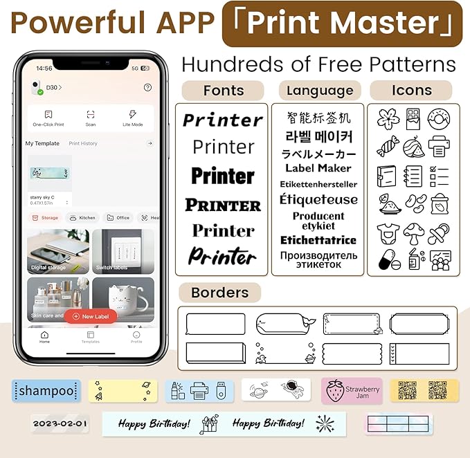 - Multiple Creative Functions & Label Templates - Choose from 1000+ symbols, 60+ frames, and a variety of fonts. Enjoy convenience and save time. Easily create various label designs using the app, including icons, text, tables, symbols, logos, barcodes, QR codes, images, timestamps, Excel imports, scanning, OCR, and voice recognition. Itโs fun and effortless!