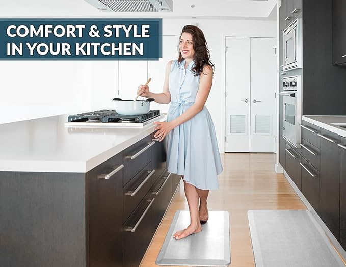 ComfiLife Anti Fatigue Floor Mat – 3/4 Inch Thick Kitchen Mats for Floor, Standing Desk Mat, Kitchen Rug – Comfort at Home, Office – Durable – Stain Resistant – Non-Slip Bottom (24" x 70", Silver)