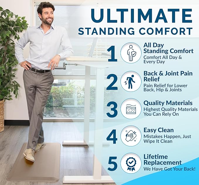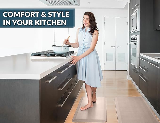 - Exceptional Comfort Anti Fatigue Mat: ComfiLife kitchen mats for floor enhance comfort while standing. It is professionally engineered and can be used as padded kitchen mat or for your standup desk that will not lose support over time. Ideal for use as a standing desk mat., kitchen mats cushioned anti fatigue, kitchen floor mat or anti-fatigue mats for kitchen floor.