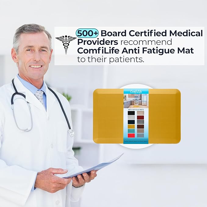 ComfiLife Anti Fatigue Floor Mat – 3/4 Inch Thick Kitchen Mats for Floor, Standing Desk Mat, Kitchen Rug – Comfort at Home, Office – Durable – Stain Resistant – Non-Slip Bottom (20" x 39", Mustard)