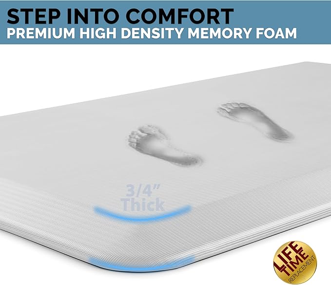 - Premium Quality Construction: The ComfiLife cushioned mat core is made of 3/4 thick, high-density memory foam that reduce discomfort on feet, knees, legs, and back while standing for an extended period. This kitchen mats cushioned anti-fatigue offers exceptional durability and long-lasting support. Perfect for high-traffic areas like the kitchen, office, or garage.