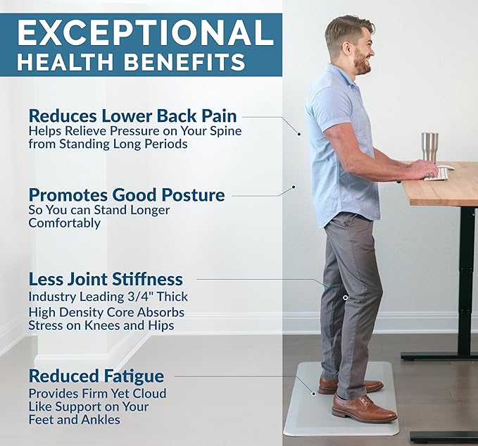 ComfiLife Anti Fatigue Floor Mat – 3/4 Inch Thick Kitchen Mats for Floor, Standing Desk Mat, Kitchen Rug – Comfort at Home, Office – Durable – Stain Resistant – Non-Slip Bottom (20" x 39", Silver)