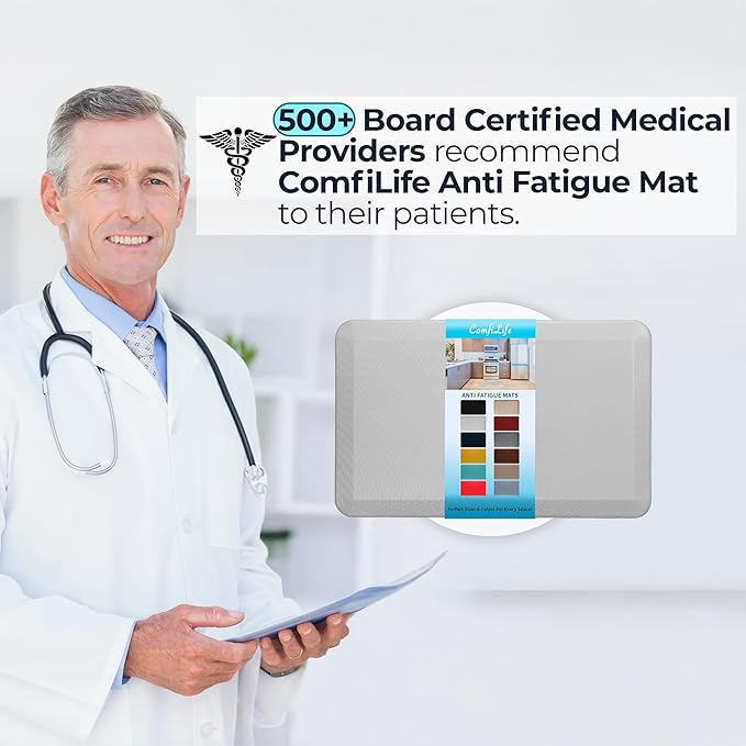 ComfiLife Anti Fatigue Floor Mat – 3/4 Inch Thick Kitchen Mats for Floor, Standing Desk Mat, Kitchen Rug – Comfort at Home, Office – Durable – Stain Resistant – Non-Slip Bottom (20" x 32", Silver)