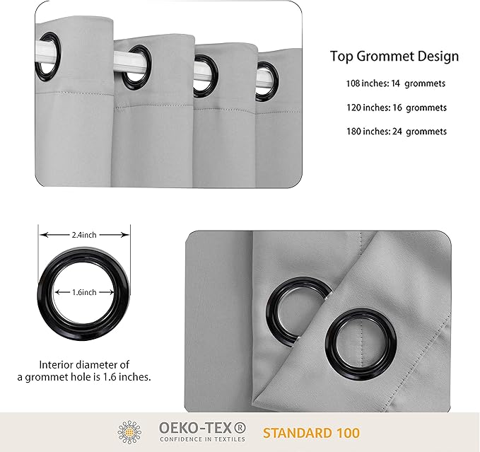 - WHAT'S IN THE PACKAGE? Each set includes 1 curtain panel, and each window drape measures 96-inch (8 ft) length by 108-inch (9 ft) width. 14 elegant metal grommets with 1.6-inch inner diameter, fit well with standard or decorative curtain rods, which makes the curtains easy to install and slide.