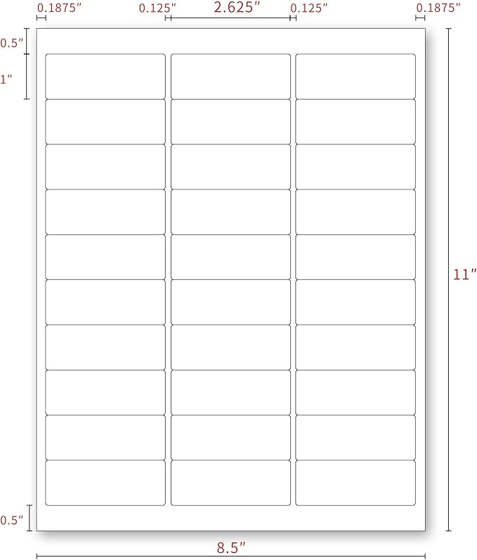 - 15000 PRINTER LABELS come in 500 sheets of 30 labels each. Each label measures 1”H x 2.625”W, perfect for creating your own return address stickers on your laser or inkjet printer.
