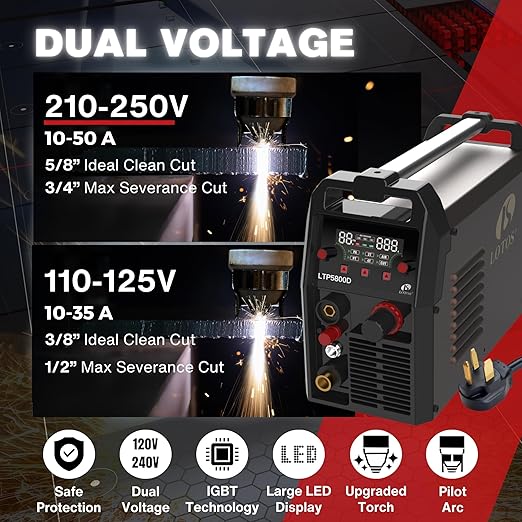 LOTOS LTP5800D 58A Plasma Cutter, 5/8" Clean Cut (3/4" Severance), Non-Touch Pilot Arc, Up to 15% Faster Cutting, Dual Voltage 110/220V, LED Panel & Front Regulator, Portable Plasma Cutting Machine