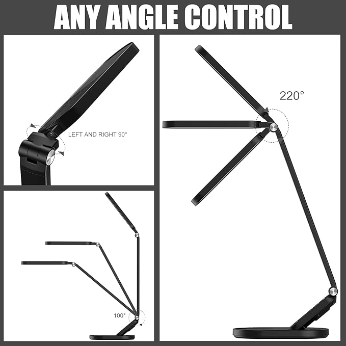 - ☀Durable and flexible durable full metal body and multi-angle adjustable head and arm. The base of this lamp can be tilted 100°, and the head can be tilted up 180° & swivel 220°.