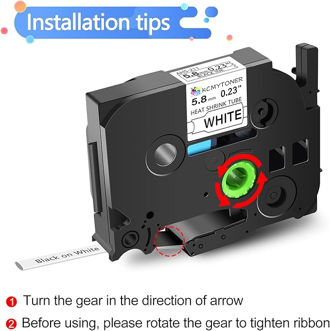 - Package Included: 2 pack KCMYTONER compatible for ptouch HSe-211 HS-211 HSe211 HS211 heat shrink tube label tapes; color: black text on white tape; size: 1/4 inch (5.8mm, flattened width) x 4.92 feet (1.5m).The size indication for this heat-shrink tube label is the width of the flattened tube as a label in a label printer. Do be aware that the size given relates to the label making machine, not the wire. HSe-211 5.8mm tube suits cables ranging from Ξ¦1.7mm to Ξ¦3.2mm in diameter.