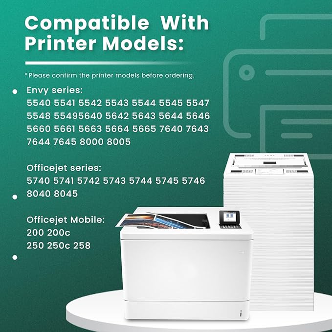 - Compatible Devices : For HP ENVY 7640, 5660, 5540, 5640, 5642, 5542, 5543, 5544, 5545, 5547, 5548, 5549, 5643, 5644, 5646, 5661, 5663, 5664, 5665, 7643, 7644, 7645, 8000, 8005, OfficeJet 200 Mobile, OfficeJet 250 Mobile, OfficeJet 258 Mobile, OfficeJet 5746,5740, 5743, 5745, 5741, 5742, 5744, 8040, 8045 Printers For HP ENVY 7640, 5660, 5540, 5640, 5642, 5542, 5543, 5544, 5545, 5547, 5548, 5549, 5643, 5644, 5646, 5661, 5663, 5664, 5665, 7643, 7644, 7645, 8000, 8005, OfficeJet 200 Mobile, OfficeJet 250 Mobile, OfficeJet 258 Mobileโฆ See more