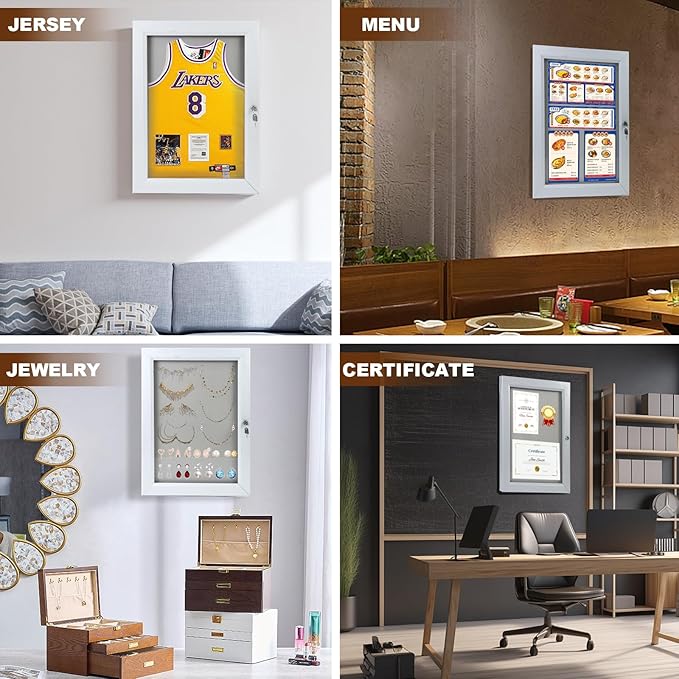 - 【Lockable Design & Security】Durable acrylic doors and Lockable showcase with security locks (two keys included) prevent unauthorized access or tampering, ensuring the protection of important information and documents in high-traffic areas