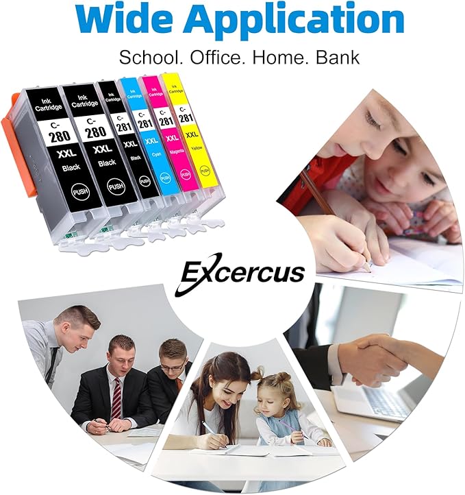 - 【Product Advantages】EXCERCUS replacement for Canon PGI-280XXL CLI-281XXL ink cartridges use smart chips, which are better compatible with your printer. High-density ink provides vivid and sharp printouts. engineered to work in seamless unison with your Canon inkjet printers.