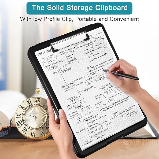 - Sturdy and Compact: the plastic storage clipboards compartment is made of quality polypropylene (PP) plastic material, which is sturdy, water proof and not easy to break; The metal low profile clip is also strong enough for long term use