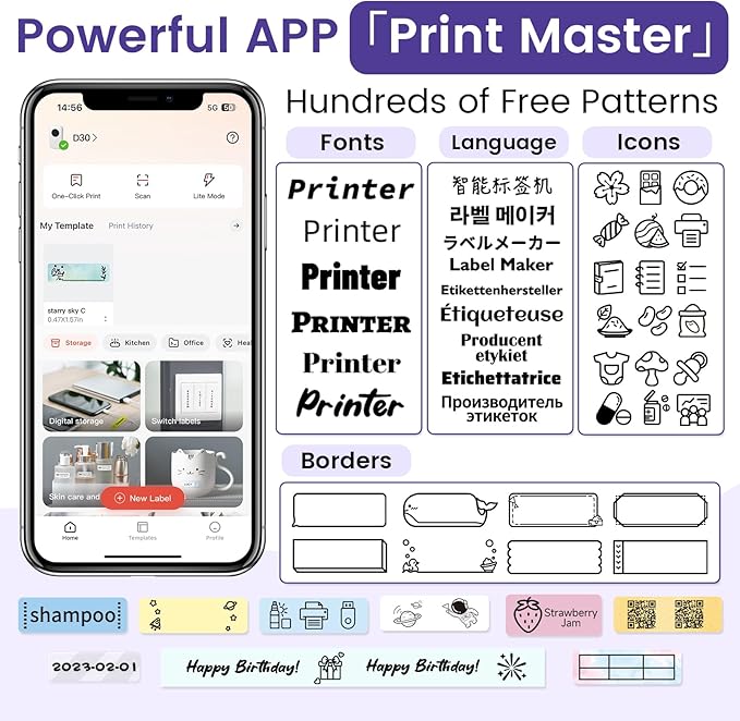 - Multiple Creative Functions & Label Templates - Choose from 1000+ symbols, 60+ frames, and a variety of fonts. Enjoy convenience and save time. Easily create various label designs using the app, including icons, text, tables, symbols, logos, barcodes, QR codes, images, timestamps, Excel imports, scanning, OCR, and voice recognition. It’s fun and effortless!