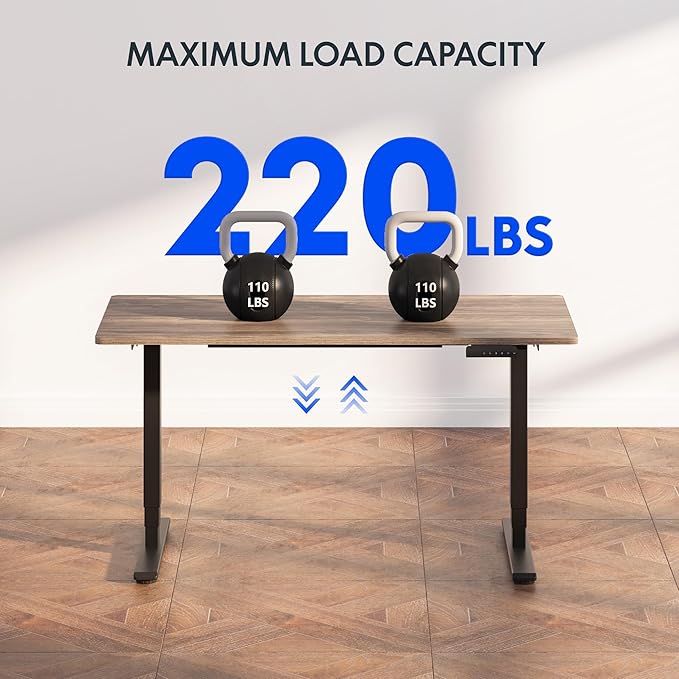 - 【QUIET & SMOOTH DUAL MOTORS】 Effortlessly lift and lower the electric standing desk with whisper-quiet dual motors that produce less than 50 dB of sound. These motors can handle 65% more weight (up to 220 lbs total) than single-motor desks, ensuring minimal noise disruption, even in the quietest room.