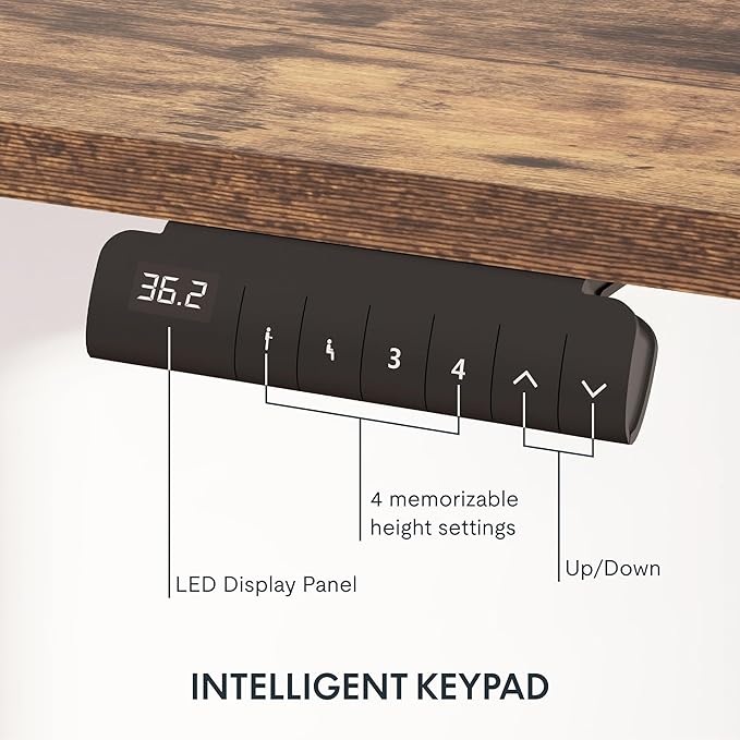 - 【PROGRAMMABLE CONTROLLER】 Easily set your preferred desk heights using the convenient control panel. Program up to four different heights into the memory buttons, allowing you to switch between sitting and standing positions effortlessly.