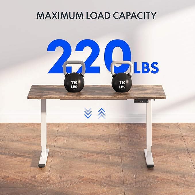 - 【QUIET & SMOOTH DUAL MOTORS】 Effortlessly lift and lower the electric standing desk with whisper-quiet dual motors that produce less than 50 dB of sound. These motors can handle 65% more weight (up to 220 lbs total) than single-motor desks, ensuring minimal noise disruption, even in the quietest room.