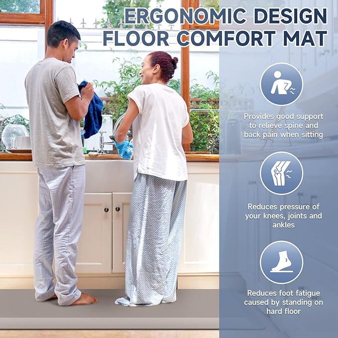 - 【Anti-Fatigue】Comfort floor mat provides comfort when standing. Reduces pressure on knees and ankles. Relieves back and spine pain when standing and relieves fatigue caused by standing for long periods.