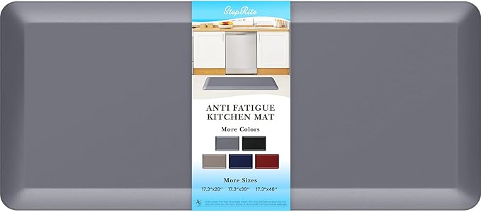 StepRite 4/5 Inch Thick Kitchen Mat Anti Fatigue Mat Kitchen Rugs Kitchen Decor Non-Slip, Stain Resistant, Waterproof Kitchen Mats Desk Mat for Kitchen, Office, Workshop, Grey, 17'' x 39''