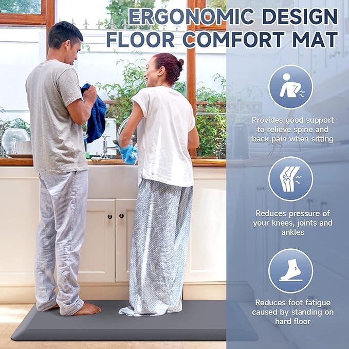 - 【Anti-Fatigue】Comfort floor mat provides comfort when standing. Reduces pressure on knees and ankles. Relieves back and spine pain when standing and relieves fatigue caused by standing for long periods.
