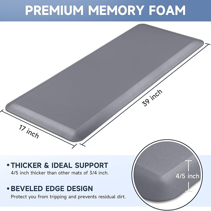 - 【Thicker Mat】The StepRite kitchen mat is made of 4/5 inch thick memory foam for better support and comfort when standing. Measured as 17*39 inches. Suitable for kitchen, office, laundry room or any high-traffic area.