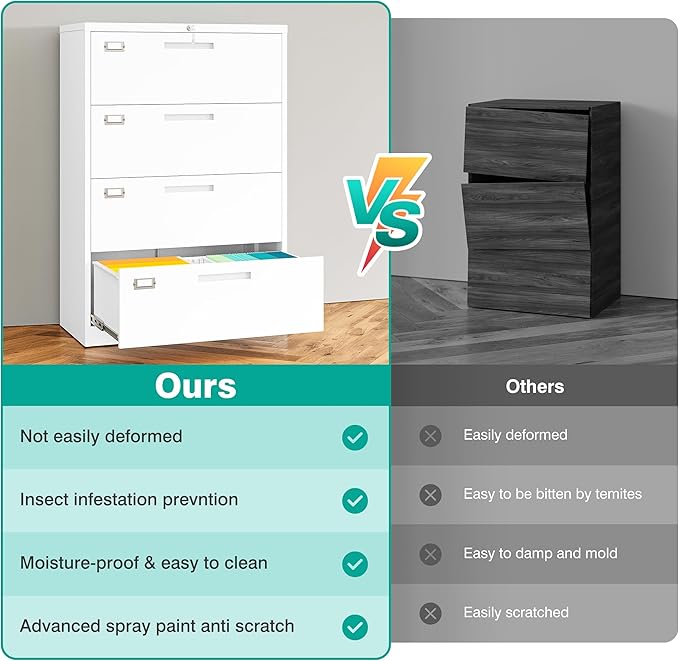 - 【Anti-tilt Mechanism】: All drawer interlocking mechanisms are designed to prevent tilting and ensure that only one drawer can be opened at a time; the file cabinet has 1 lock and 2 foldable keys to effectively protect your private documents and valuables. It is suitable for various scenes such as offices,home