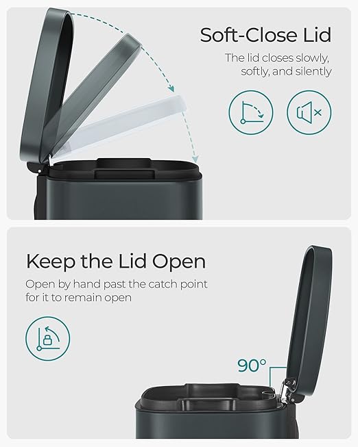 - [Soft-Close, Odor-Sealing Lid] This kitchen trash can features a slow and quiet soft close lid. The tight seal of the lid prevents lingering odors