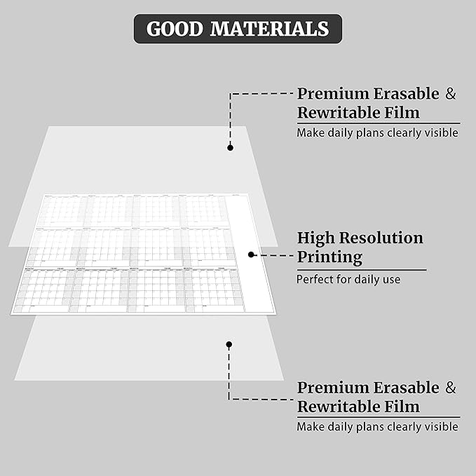 - Large Dry Erase Calendar for Wall – Yearly Wall Calendar Dry Erase, 37" x 57.9", 12-Month Undated Blank Calendar Planner, Reusable Laminated Task Organizer, Great for Office, Classroom, Home