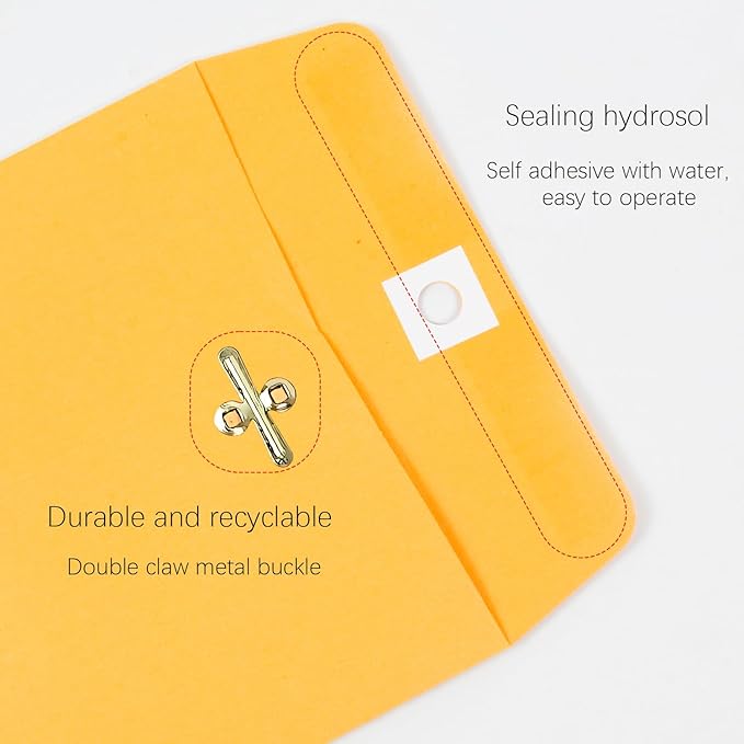 - Two-layer seal: 2-prong metal buckle and reinforced eyelet seal, recyclable, inner rubber seal with water-soluble glue, double-layer seal provides security for your items and documents