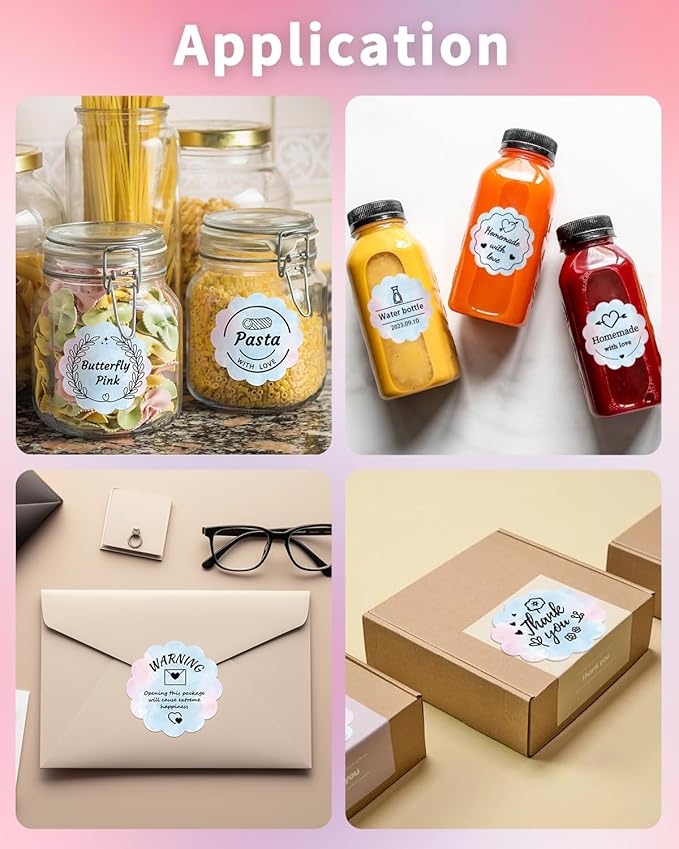 - 【 Commercial Grade Stickers 】- The special stickers labels paired with your custom patterns will definitely make your product unique and impressive. Phomemo thermal labels are the ideal custom stickers personalized for schools, families, small business suppliers, logistics, kitchen storage, letters, pastry labels, logo stickers, cans, and gift labels