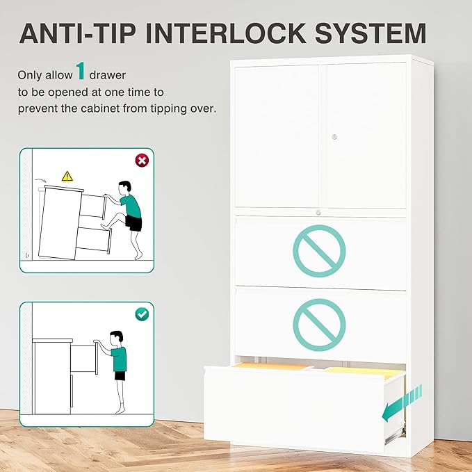 - ✨【Heavy File Cabinet】Lateral file cabinet is integrally formed, using heavy-duty cold-rolled steel plate, the entire metal frame is thickened, more durable, each shelf has a carrying capacity of up to 180 pounds, sturdy and not easy to deform, use with confidence, the metal surface is environmentally friendly and harmless powder coating, easy to clean, prevent Scratch and rust
