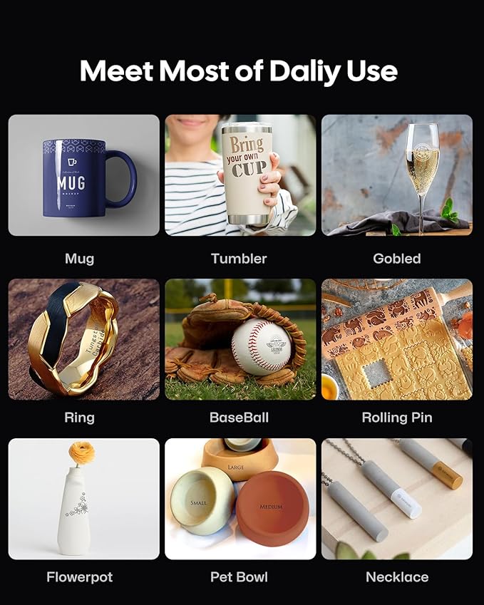 - Complete Rotary Solution for Curved Surfaces: Professional rotary kit engraves Ø0-145mm items with 3° accuracy. Includes industrial-grade clamps - 56% faster setup than basic rotary attachments.