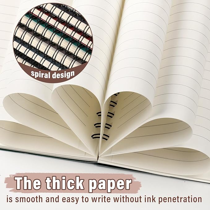 - Smooth to Write: each spiral journal notebook has 60 sheets (120 pages), and each page adopts quality 80gsm white paper, smooth and easy to write, preventing ink infiltrating into the next page, and mild colors can avoid eye fatigue and bring comfortable experience