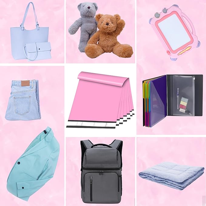 - Eye-Catch Poly Mailers Bags--- Usable size: 19x24 Inch, 100Pack. These shipping bags have a pink outer surface, and gray inner lining, a highly attractive color that makes your products look better. Their smooth texture makes it easy to affix self-adhesive stamps and address labels, helping you customize your brand.