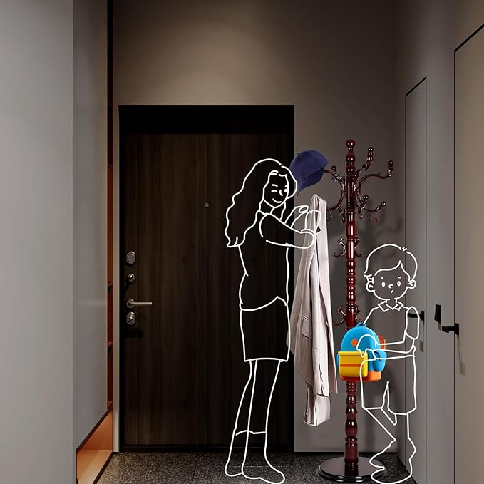 - 【A CLEAN AND TIDY HOME】Do you have the same trouble of disorderly arrangement of things? This freestanding coat rack can make your home look neat.Leave it by the door and use it when you go home or out, easily hanging up your jackets and bags, hat or coat,saving you time to organize.I believe you will love it!