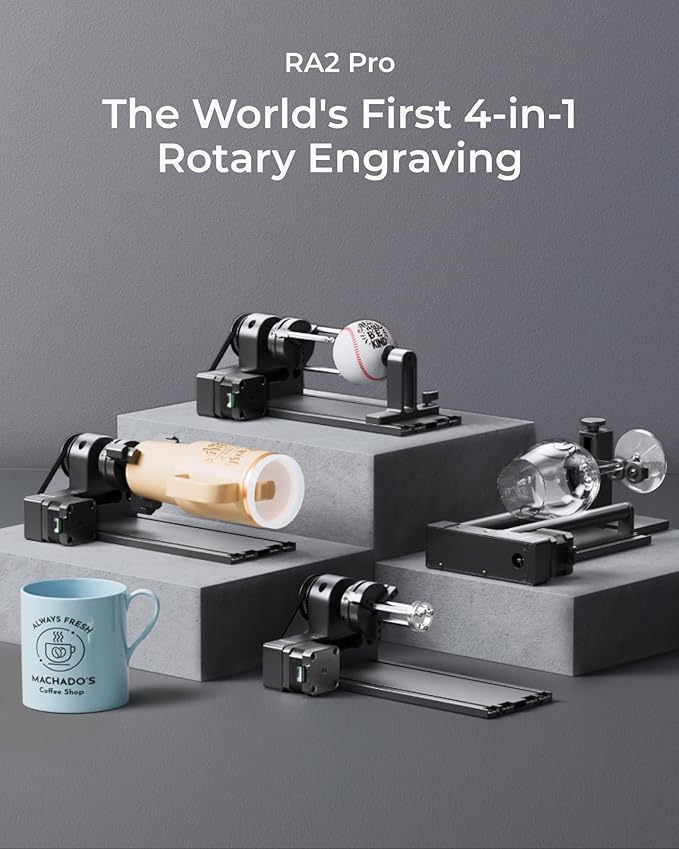 - [One-Stop Accessories for Versatile & Expandable Use]S1 is compatible with 4 switchable laser modules (10W/20W/40W/2W IR) for laser engraving almost any material, including laser engraver for wood and metal, acrylic and leather. Use the riser base for taller items or the RA2 Pro for cylindrical objects like tumblers and rings. The auto-feeder accommodates projects up to 118'' long, and xTool’s screen printing option adds color to nearly any surface. (Note: Accessories sold separately unless part of a bundle.)