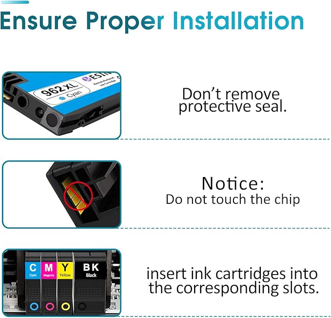 - Package Contents: Compatible for hp 962 962xl Ink Cartridge Combo Pack ( 1 Black,1 Cyan,1 Magenta,1 Yellow).