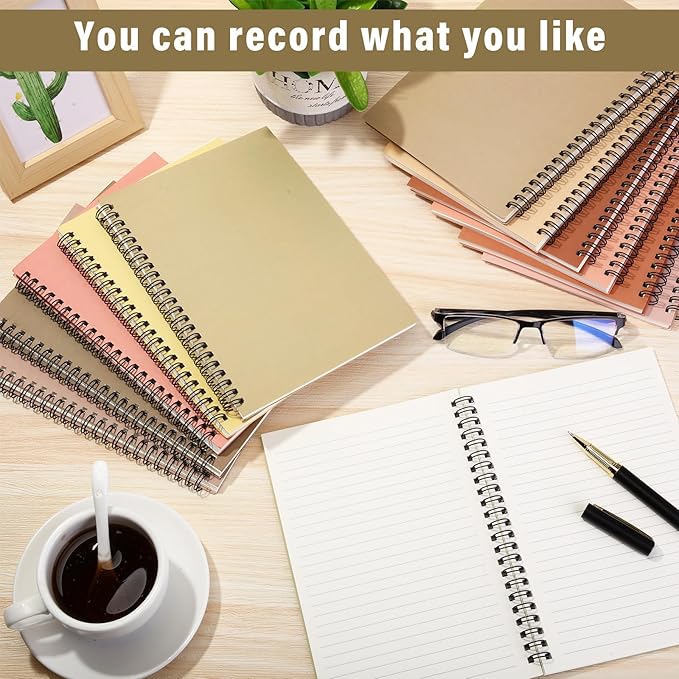 Fuutreo 12 Pcs Spiral Notebook for Work A5 8.3 x 5.7 Inch College Ruled Spiral Journal Notebook Kraft Cover Notebook Ruled Paper, 12 Color, 60 Sheets, 120 Pages for Office School (Vibrant Color)
