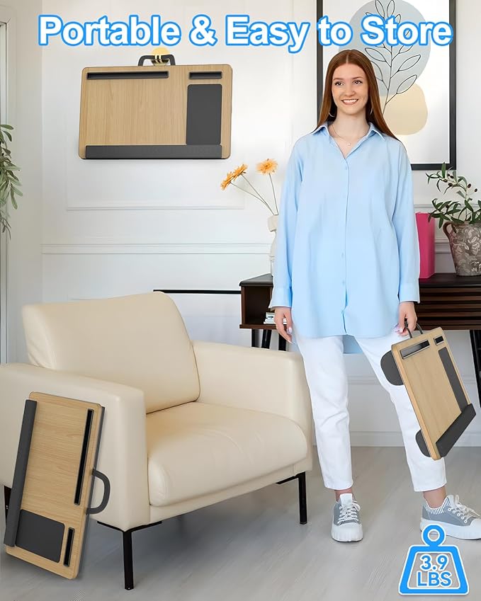 - Lap Desk for Laptop with Cushion : The soft double-padded base allows air flow and make legs cool. You can use laptop stand for couch in multiple places: on the bed, recliner, couch, floor and table. It can also be used for multiple purposes: home office, studying, crafting, eating, etc.
